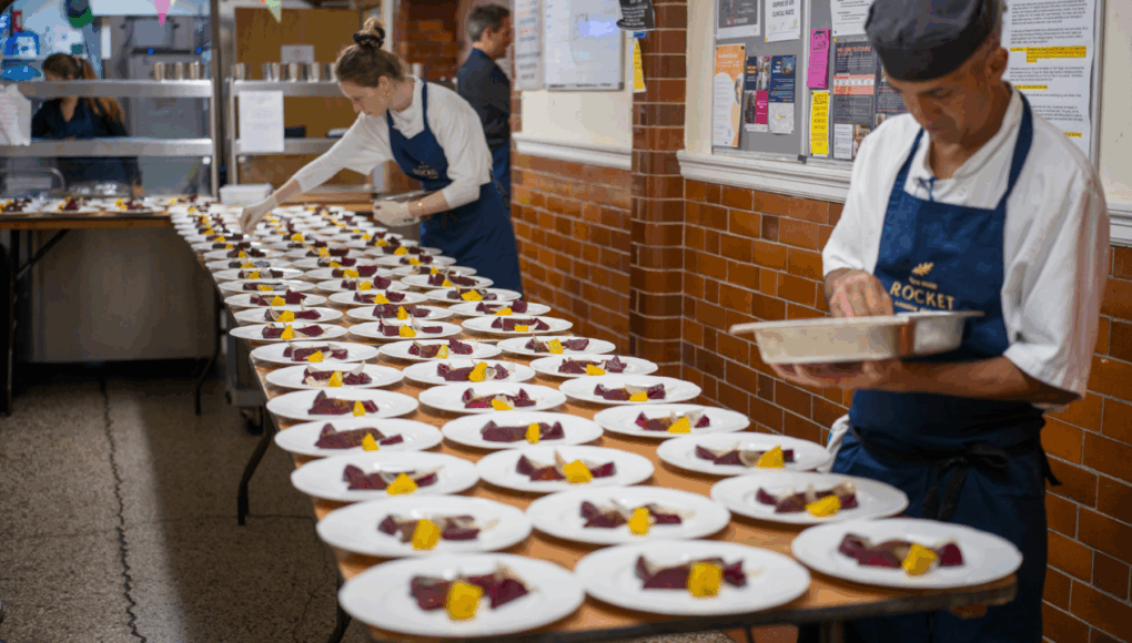 Ace of Clubs, based in Clapham, has long been one of our partner charities and an organisation close to our hearts. For this milestone evening, Rocket’s incredible team from across all departments volunteered their time to deliver a full Rocket dinner service. From event managers and chefs to warehouse staff, the marketing team, and our Managing Director, it was inspiring to see such a brilliant turnout and representation from every corner of the business.