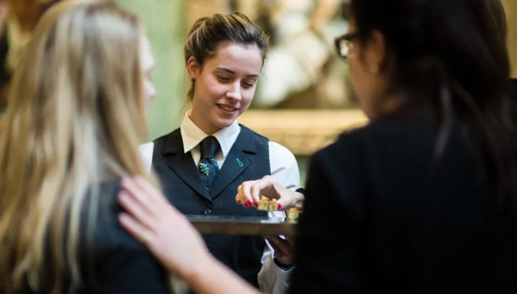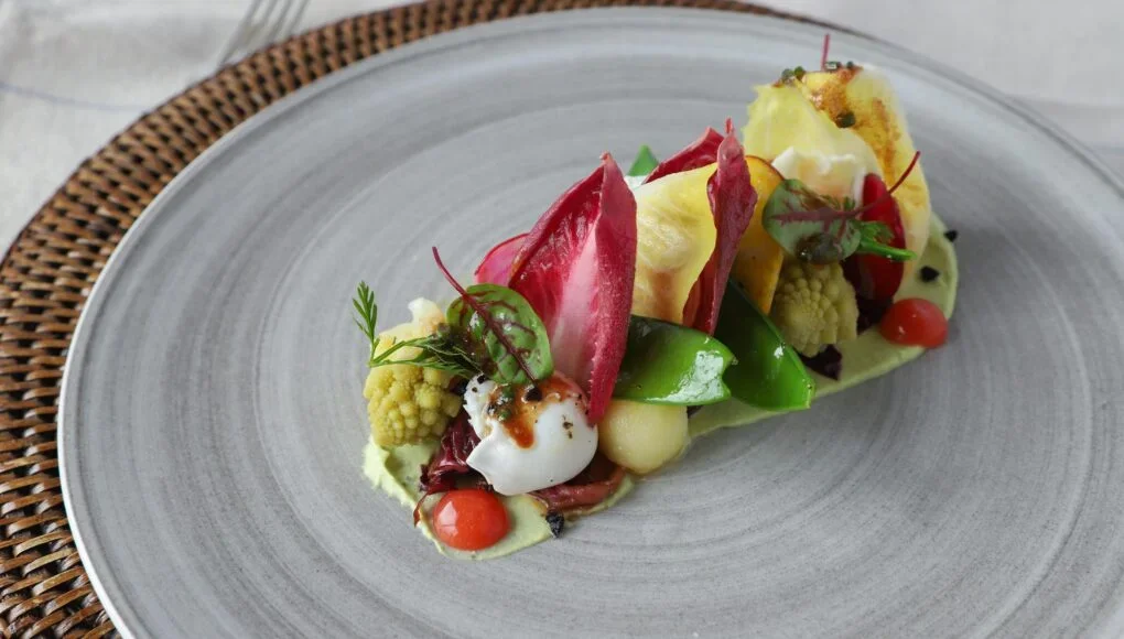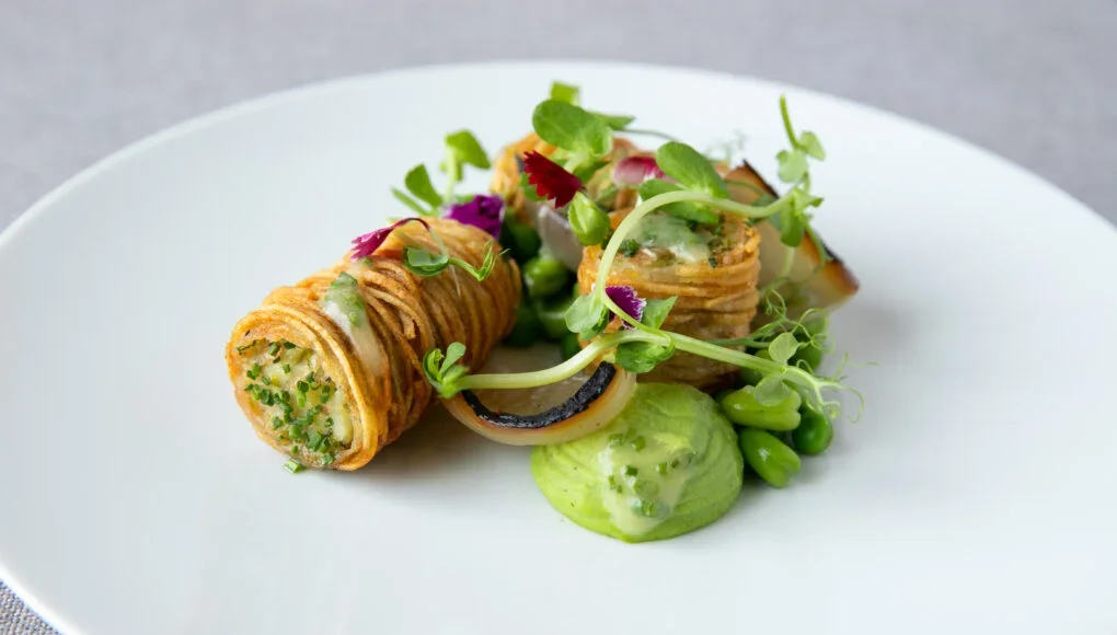 My new favourite canapé this season has to be pea pods with coconut yoghurt. It looks beautifully simple, but it is in fact quite deliberate. The peas are removed from their pods, blanched, then put back into the pod with a bit of coconut yoghurt, pea purée and seasoning. It’s delicate, crunchy, and spring in a bite, a true reflection of the incredible produce that’s available this time of year. It also happens to be vegan which is something our clients are requesting more and more.