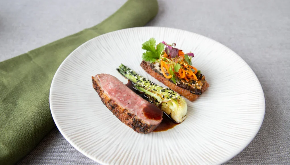 The Barbary duck is a really beautiful plate of food. The richness of the duck is balanced with the acidity of the miso-glazed aubergine and the sticky rice, which is crispy on the outside and unctuous on the inside. The pickled kohlrabi and bok choi add a lightness to the dish and it’s finished with the most luxurious Szechuan jus.