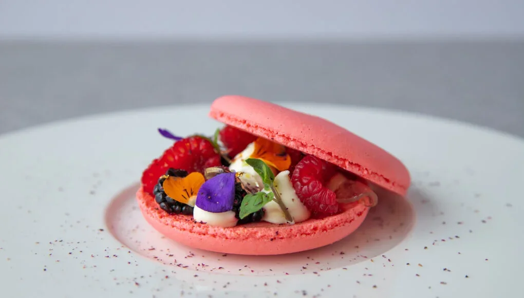 You cannot go wrong with the Summer Berries Macaron, a dish that celebrates the English summer. The vividly-coloured and delicate macaron is filled with a summer berry compote, white chocolate ganache, and finished with rose and lemon veil, gold leaf and mint cress. It’s a total crowd-pleaser and the perfect ending to a summer meal.