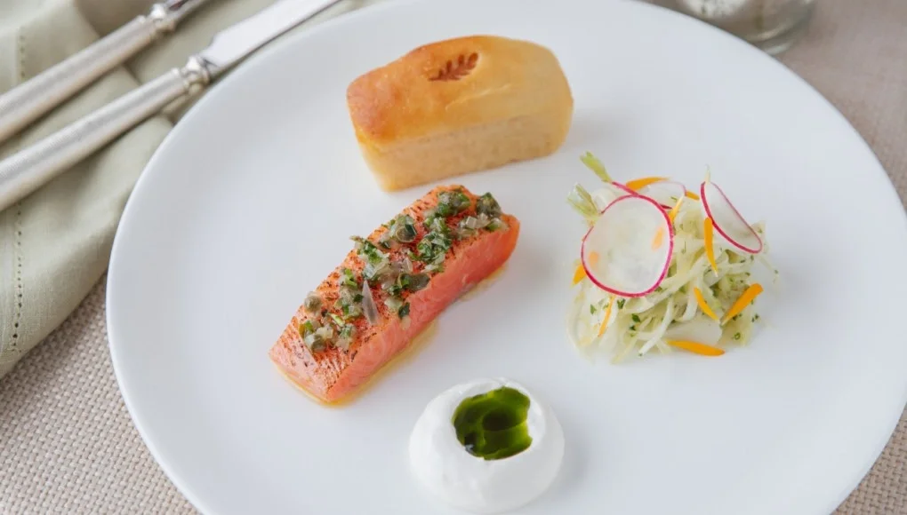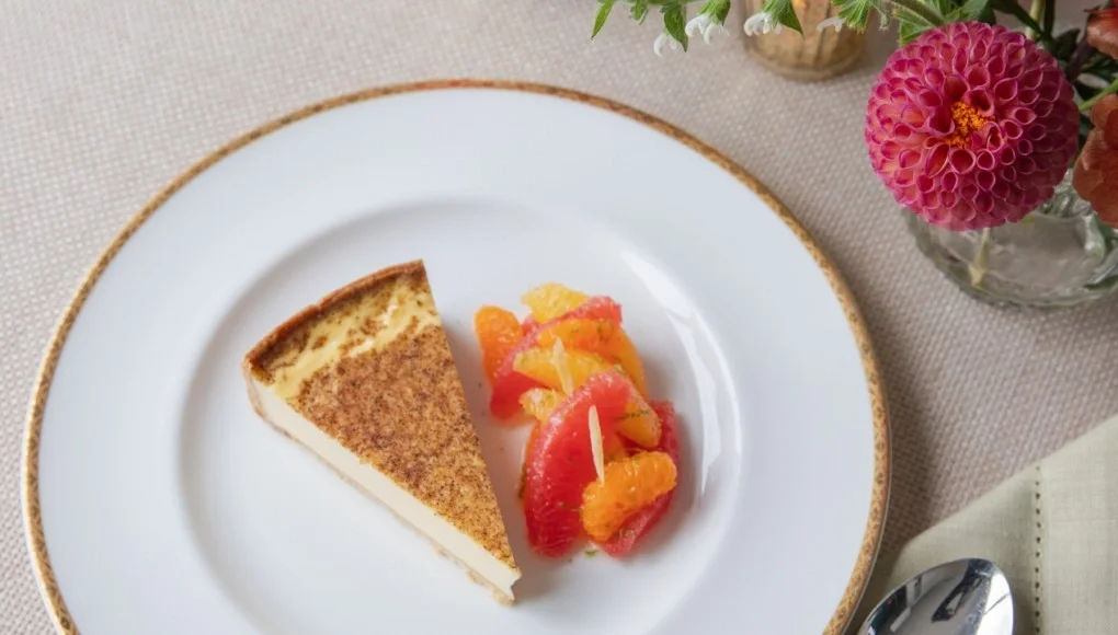 In a contemporary take on a quintessential childhood classic, our English custard tart carries notes of cardamom and is paired with a zesty citrus salad. The contrast of textures and balance of flavours provides a playful riff on an established favourite and is not to be missed this season.