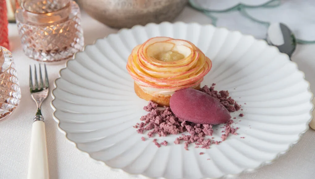 Whether you’re satisfying your sweet tooth or indulging in a refined after-dinner treat, The Pink Lady is a dessert for everyone to enjoy. Delicately layered and baked in buttery pastry, this final course embodies the sweet and tart essence of the Pink Lady Apple. A velvety blackberry sorbet graces the plate, imparting a burst of freshness that perfectly complements the richness of the tart.