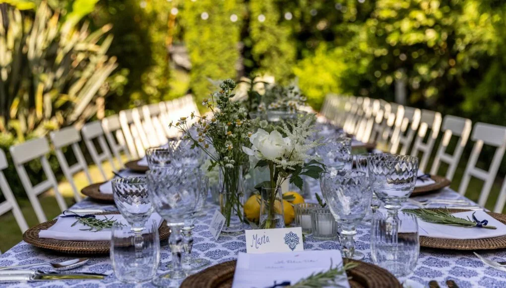 When choosing flowers and foliage for your table set up, Rocket’s Head of Creative Rachel Warren advises drawing inspiration from your menu and choosing seasonal varieties that complement your overall theme. For example, embellish your table with ingredients from your dishes – pots of fragrant basil, mini tomato plants, and plump lemons.