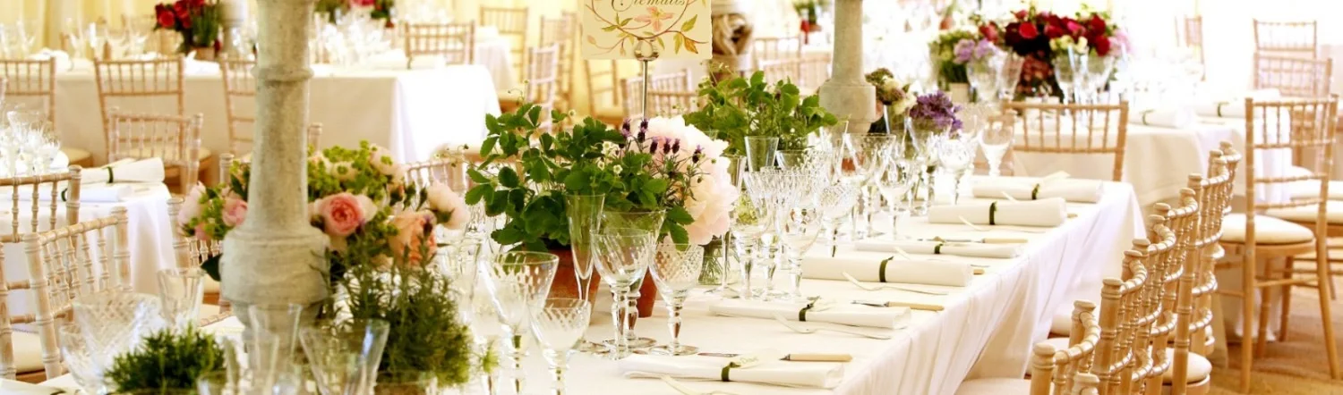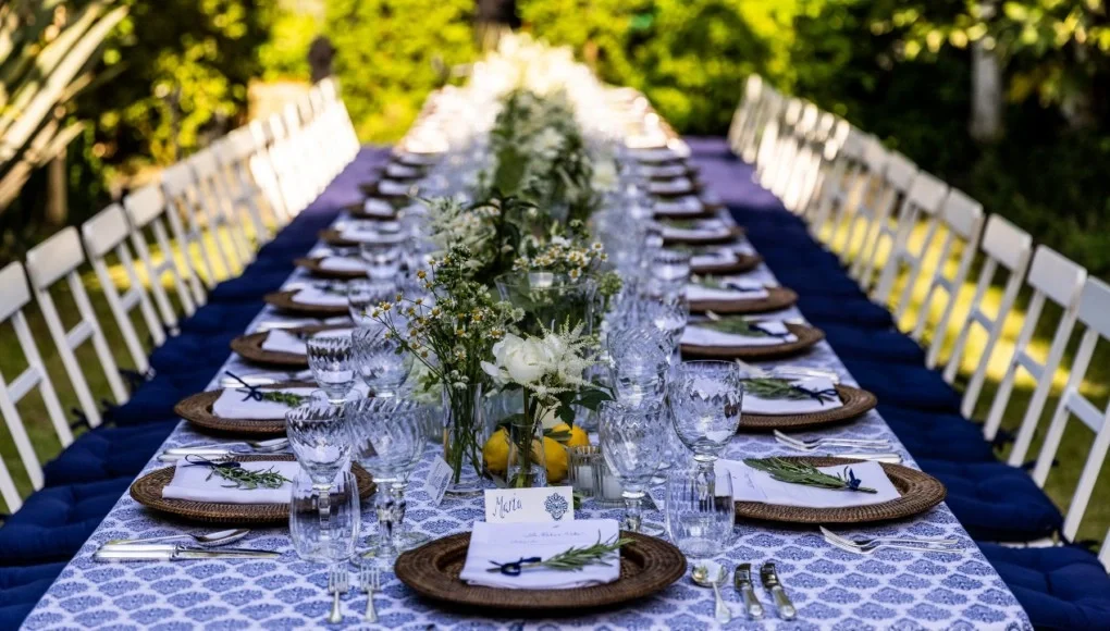 Traditional whites and off-whites are becoming a thing of the past. In 2022 we’re seeing the return of stripes, patterns, and more vibrantly coloured tablecloths. Our top tip: try to source or make your own tablecloths by heading off to your local fabric shop and selecting a fabric that you like (we can also help do this for you). You’ll have originality immortalised forever.